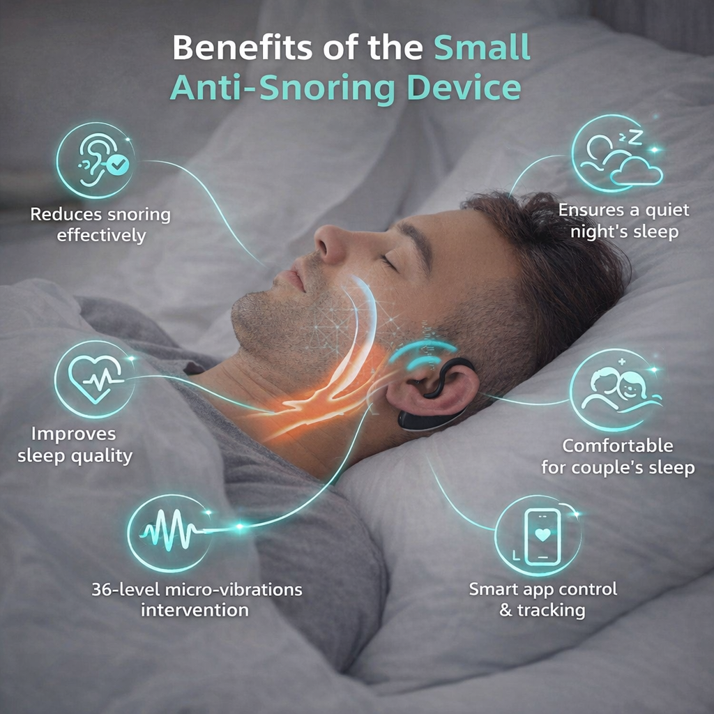 When the snoring sound is recognized as snoring by the device, the device will vibrate and the vibration level will be adaptive. If the intervention of the current vibration level is unsuccessful, the vibration will increase step by step, reaching the highest level of snoring intensity set by the user. If the intervention is successful, the vibration level will be maintained; if there is no snoring for a long time, the vibration level will be reduced.